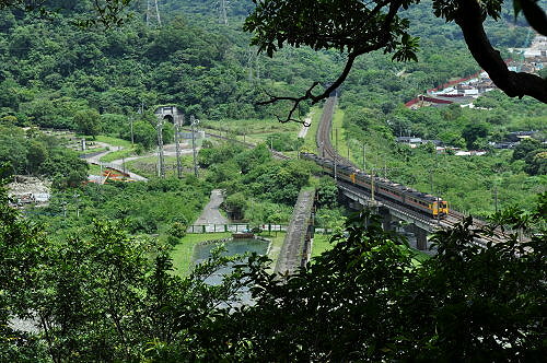 山徑之字形迂繞下山,已可望見山腳下的鐵道橋樑。