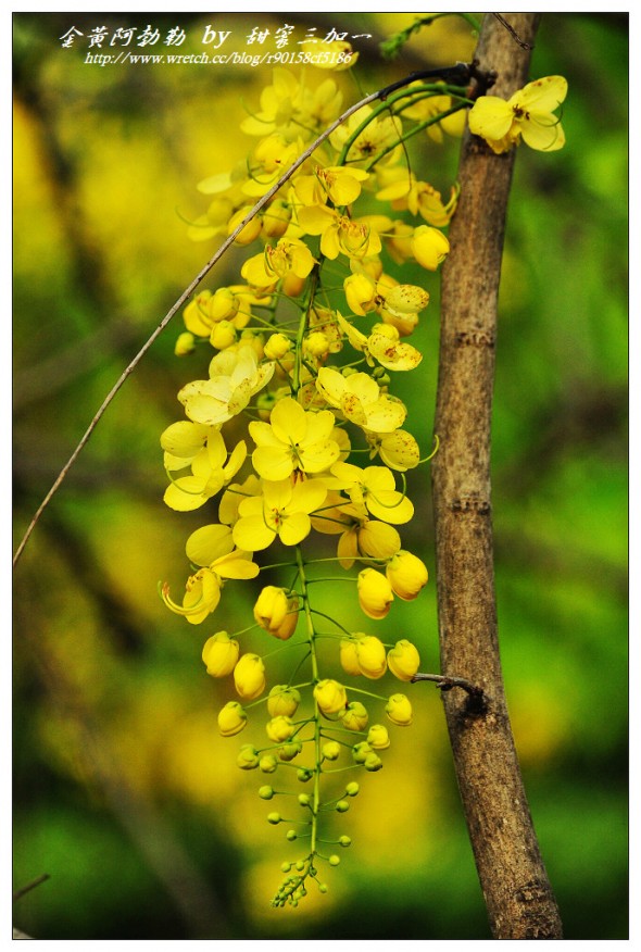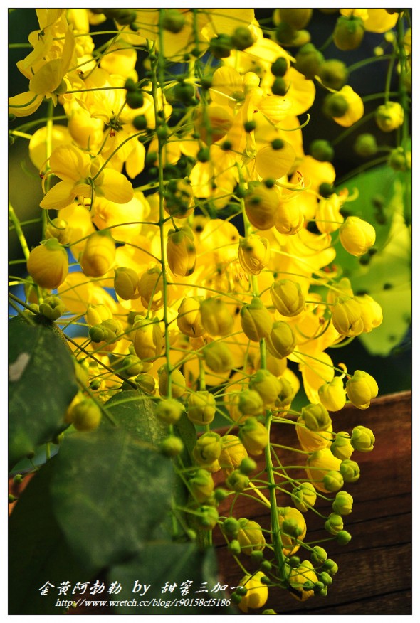 下垂狀腋生的阿勃勒花串長約在20~40釐米長 金黃花色討喜又美