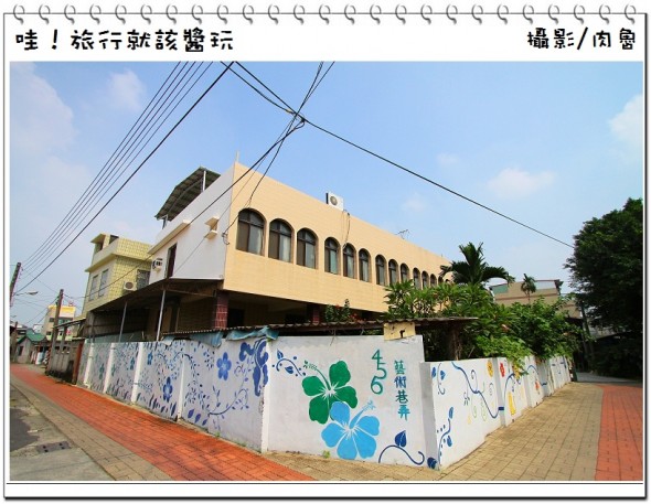 ▲步入了崇蘭社區,彎入了456藝術巷弄,簡約彩繪繽紛舞動,以扶桑花為主題,洋溢著無比熱情,總長約百來公尺,兩旁是矮小屋舍,頗有回到外婆家時的憧憬,有時…就會有貓咪突然竄出一溜煙跑到屋頂,雙眼與你對恃之後就跑走了,偶爾…阿公阿婆好奇看著你東拍西拍,然後就對著你微笑點頭,這些都是旅行裡最美的風景之一。