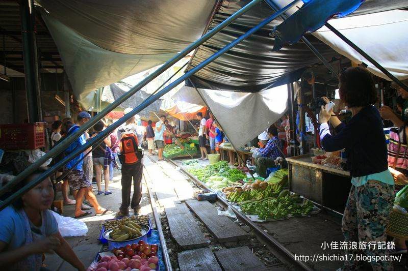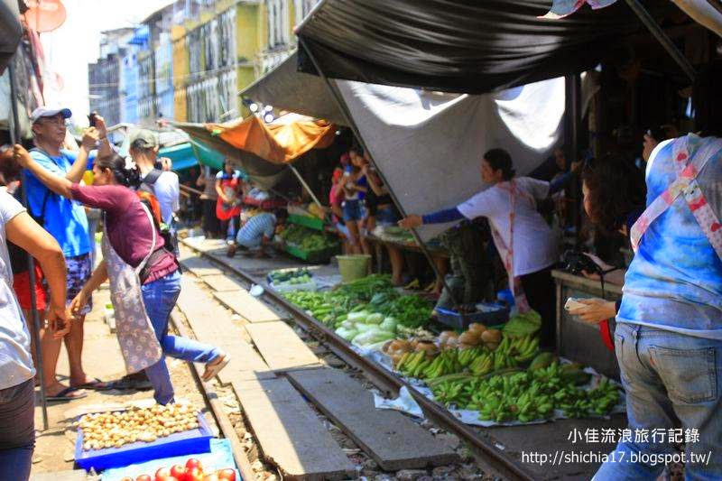 攤販的菜就放在鐵道的兩旁。