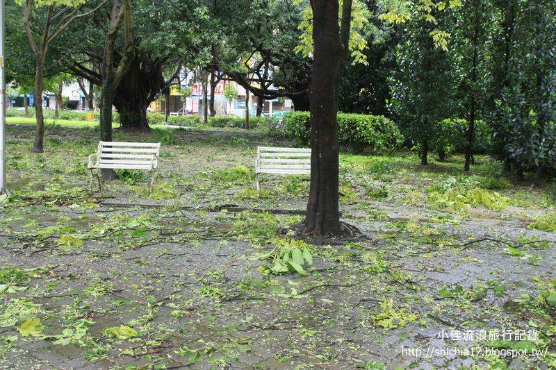 四號公園走一圈,發現樹有的連根拔起、有的樹枝斷落一地!
