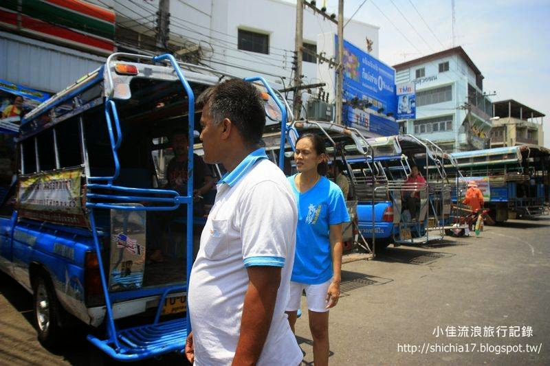 從美功市場附近的7-11前有許多的雙條,只要跟他說要到Amphawa就好,票價通常是1人8泰珠。