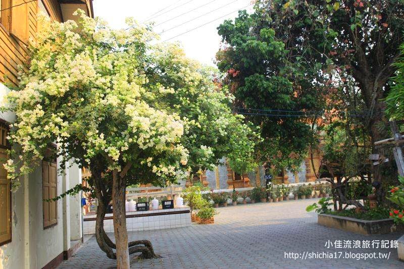 清邁最多的就是妙,三步一小廟,五步一大廟,這樣的形容實在不誇張。Gongkaew Hostel對面就有個看不見名字的廟宇,橘粉色的花讓這更添增了幽雅的藝術氣息。
