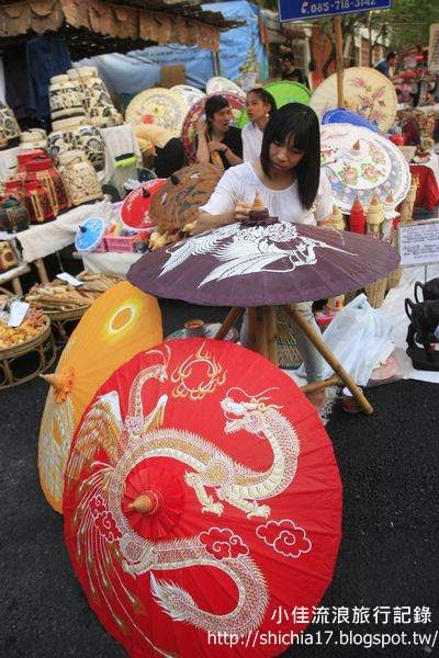 清邁是充滿藝術氣息的城市,在夜市中也有很多的藝術品,木雕、手繪紙傘、織布或畫作。