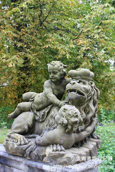 雖然是8月,德國因為緯度較高樹,竟然葉子已經漸漸變紅了。兩個小孩與獅子的雕像,不知道有什麼樣的故事。