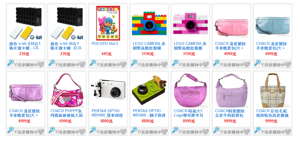 篩選結果顯示出了一些不是積木也不是相機的東西,比如說書、Coach包、行李箱等商品,不禁有些失望,但點入商品連結後發現,在標題或內文中都有出現相機以及積木,綜合搜尋的結果還算滿意,但關鍵字不精準的話恐怕會跑出很多雜七雜八的東西就是了。