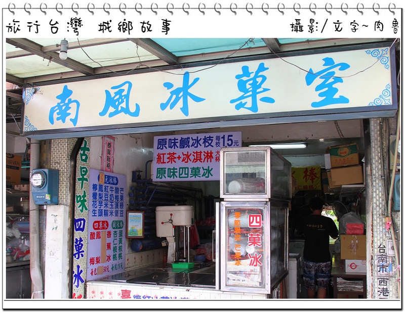 ▲下次有來到台南西港,別忘了走入這間擁有60年歷史的南風冰果室喔,嚐嚐這懷舊的水冰滋味,而西港不僅只有古早冰,還有阿良碗粿、市場炸蝦仁飯….等,絕對讓你帶回滿滿飽足感,而附近的南安國小還擁有全台灣最小的一座孔廟,差不多是30幾吋的CRT電視大小而已喔。