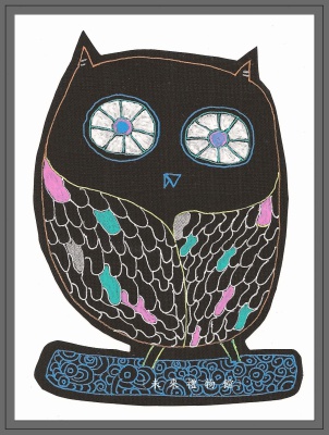 媽咪把雙眼像檸檬(不是迷濛哦)的貓頭鷹,送九色芬當衣服上的裝飾,停在肩膀的地方。