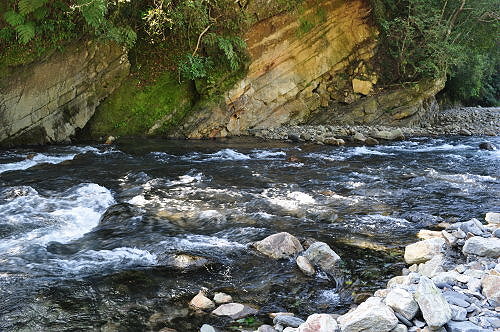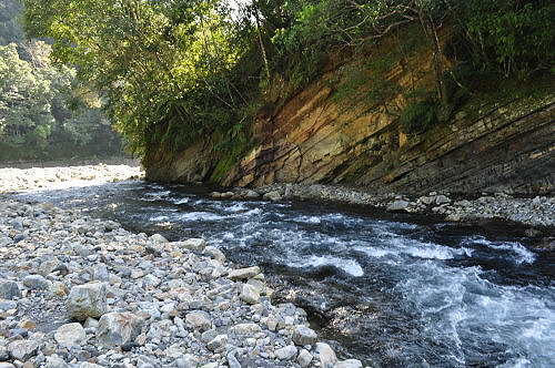 圖:梵梵野溪溫泉,在溪水對岸岩壁下。