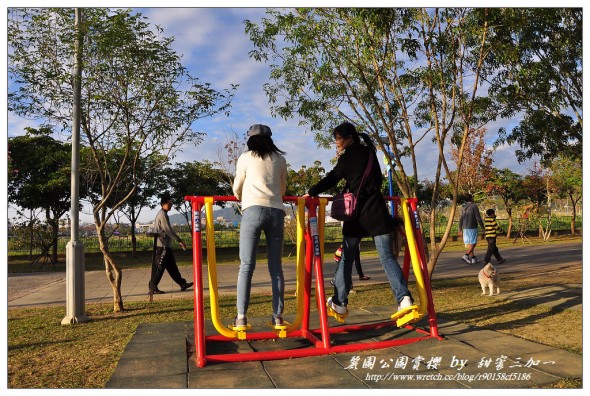 公園內整理的井然有序 除了有涼亭、大草坪、櫻花散步道、和各種健身器材設施還有小朋友最愛的遊樂器材