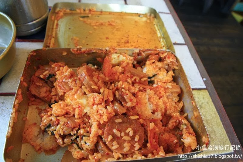 雖然看起來實在是不大美味,口感確實在很棒。韓國的泡菜很香,酸酸辣辣的,配上飯、火腿和蛋好搭阿,通通吃光光!
