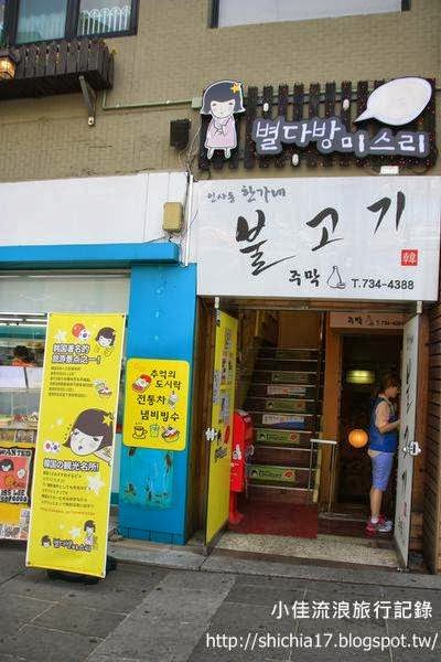 在鍾路往仁寺洞的轉角看到建築物上可愛的Miss Lee娃娃,門口的簡介和招牌更是可愛到把我們吸引到店裡!