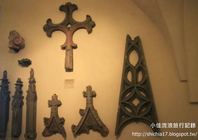 一進入教堂就看到許多中古時期留下的教堂碎片或鐵製的裝飾品,就像在參觀博物館一樣讓人有許多的感傷。