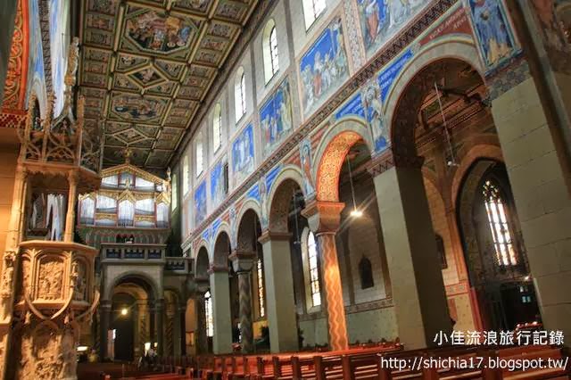 和其他教堂相同的是,這裡也擁有迷人的彩繪玻璃。不僅於聖經中的故事,更有國王、皇后和教宗等人士的圖樣。