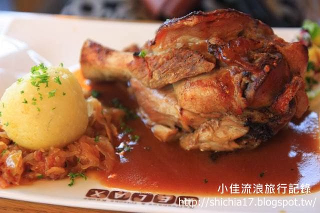 德國美食分享在一般人的印象中西方的食物普遍來說比較不美味,烹煮的過程比較簡單或以生冷食物為主。德國相當著名不能不吃的就是豬腳,通常價位在10-20€(約台幣370-700不等),最適合三個人吃兩隻,吃太多就會感覺有點膩,不然剛吃真得皮好脆,肉很香。但可惜的是德國豬腳肉普遍偏硬,也會有人覺得口味不比台灣的滷豬腳。