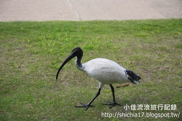 澳洲是一個動物生命權相當高的一個國家,常聽到有人在路上撞到袋鼠、鳥類或是動物之類的事情,在路上可以很容易看到動物出沒請注意的警語,在積極保護動物的環境下,換言之這邊的動物非常囂張!當我坐在河岸邊的階梯吃著午餐和餅乾時,有幾隻鳥一直走到我旁邊來回行走覷於我的食物……聽說澳洲的鳥,非常兇,害我好害怕!