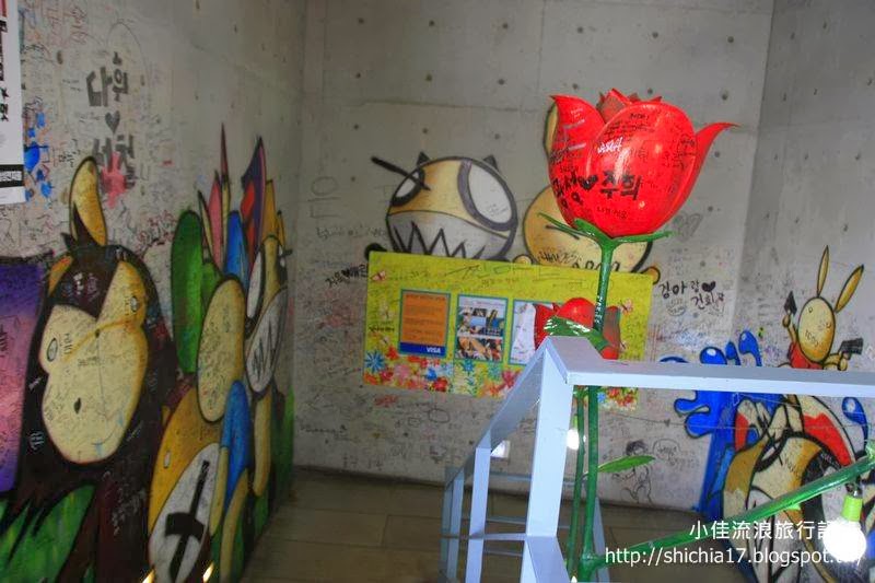 另外Ssamziegil我要推薦最頂樓廣場有間愛麗絲夢遊仙境風的冰店(因為都是韓文沒英文,所以我不知道店名。但只要到最樓上一定看得到),有紙牌僕人站在門口,還有很多圓形塑膠的留言吊牌。