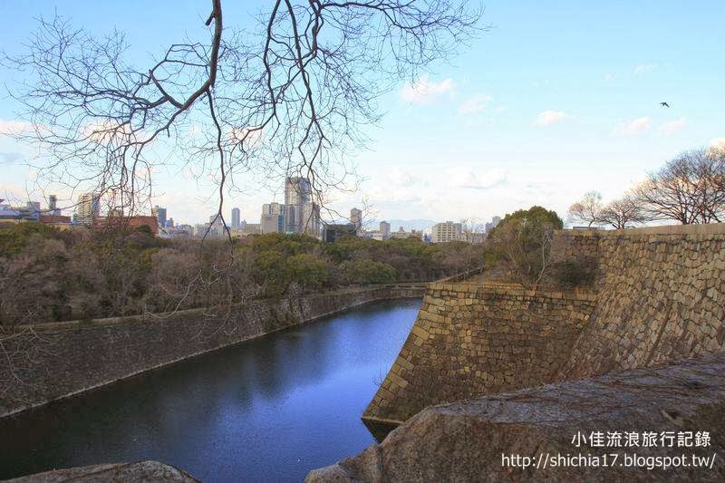 護城河圍繞大阪城,寬70-90公尺的護城河環繞在四周,城牆的高度也都在20公尺左右,實在非常的壯觀。不知道是以前來都在趕行程沒能體會他的壯觀,還是以前年紀小不懂得欣賞,這次去實在充滿了很多的感動和讚嘆。