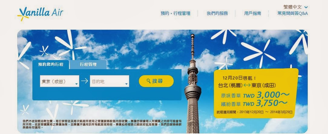 登入官網 http://www.vanilla-air.com/tw , 右上方可以選擇語言。