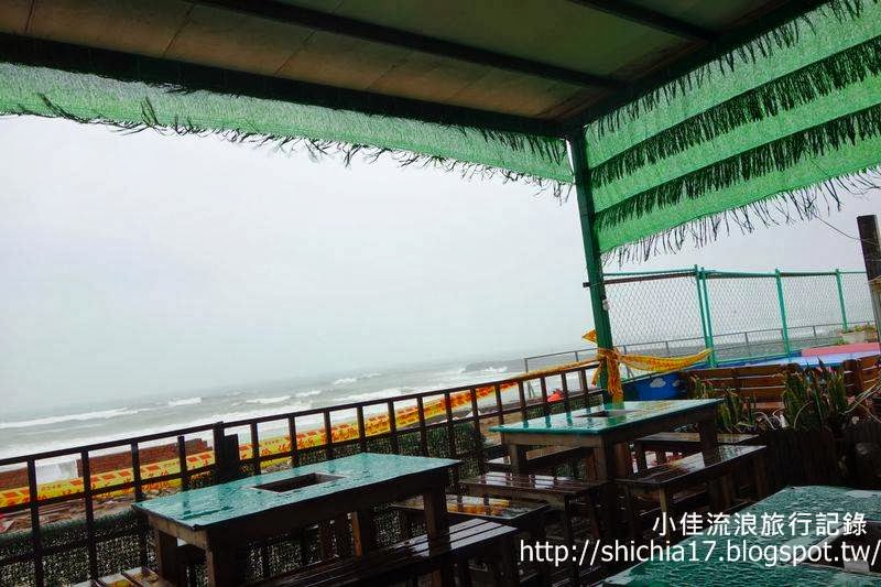 本來想著能夠看著藍天白雲和海吃羊肉爐,殊不知遇到狂風暴雨,坐在外面實在一點也不浪漫,所以我們還是選擇了室內的座位。