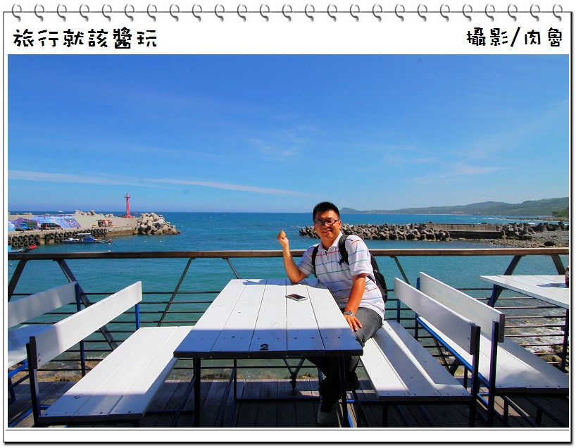 ▲美麗的新蘭漁港非常寧靜,夏日太陽自然也非常大,新蘭漁港是屬於灣內漁港,躲藏在海灣裡的小漁港,這裡有一間叫做來看大海cafe,坐在木棧平台上的桌椅,點杯飲料或餐點看看海發發呆,享受來到台東旅行的慵懶。