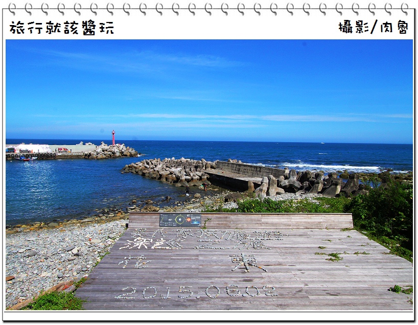 ▲從新蘭漁港往南,有一條海濱小徑木棧道,怕太陽曬的可以躲在木棧道下方的石階唷,那裡可是一個超棒的觀海石階呢,在新蘭漁港也是很適合觀星的地方,因為這裡只有幾戶人家少了光害,從上往下眺望也可見到有人用石頭排出字樣,上面好像寫著黃氏家族花東深巡之旅,我也好想來排一下唷,這裡也很適合求婚,對吧。