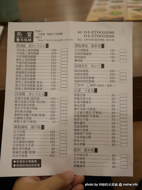 粉 絲 團:https://www.facebook.com/pages/熊富手打烏龍麵台中店/395421733960954