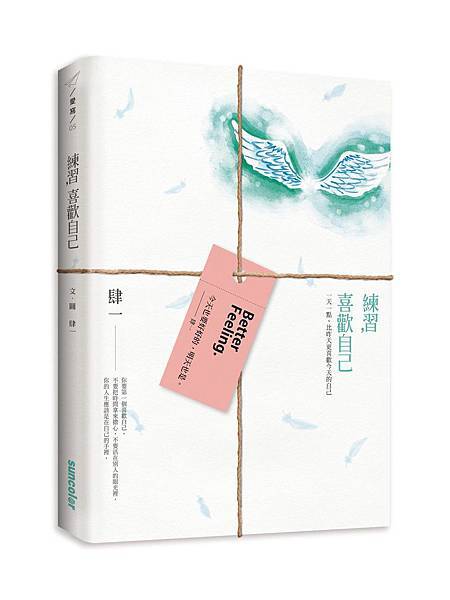 《練習,喜歡自己》與老三一樣,是一本圖文書。掙扎了很久,最後封面用了翅膀當主圖。常常我們會記得照顧身邊的人,但卻忽略了自己,因此希望跟大家說:每個人其實都可以是自己的天使,不要忘記守護自己;而書也特地用麻繩綁了起來,就像是將一疊信件包綑了起來一樣,並附上一張鼓勵的標籤。而這條細繩,在你閱讀完書後可以選擇再綁回去,或者在閱讀的途中,當做書籤夾在書本中。
