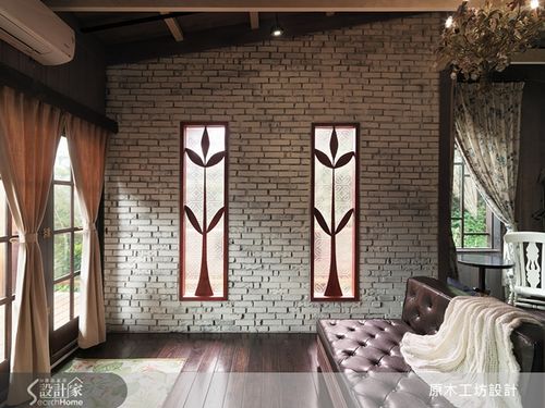 原木工坊的作品中,經常利用玻璃門、窗引光入室,每一扇門、窗,都以不同的手繪、雕刻圖騰呈現,其中最常出現的,就是師法於大自然,以苗木、樹葉等實體為靈感,透過藝術手感,轉化為抽象性圖騰,再搭配粉色花紋玻璃或磨砂玻璃,將光線引入室內。