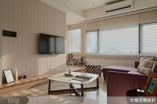 一個人的空間也可以很有溫度,卻不會顯得侷促,因為拿掉了隔間後,視覺獲得解放,心靈也能自由。統一選用溫潤的木質素材,但呈現不同風貌,就能打造具有層次感的紓壓空間;色彩的選擇也相當溫柔敦厚,女主人喜愛的紫色 L 型沙發融入其中,就是那麼自然。
