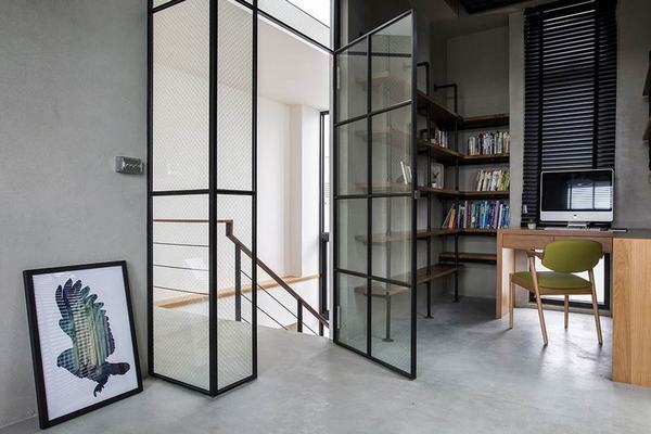 為了將現場絕佳的採光條件發揮到淋漓盡致,但是又要兼顧住居必要的隱私,因此吳秉霖、徐國棟、汪銘祥幾位設計師先以沉穩厚實的木料、乾淨柔白基底,塑造各個領域清新又富於濃郁自然感的輪廓,例如客廳搭配輕盈的白色鐵件格櫃、週邊大面積白色木百葉美化、安定窗景,還有書房入口的鐵件玻璃拉門等等,一方面延展視覺景深,同時也能吸引天光在室內自由流動,空間感舒服極了!