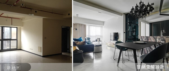 對於新婚族或是交往中的情侶來說,擁有 30 坪的風格雅居,大小適切的坪數,真的是打造甜蜜愛窩的首選!總是充滿創意、擅長打造機能與風格兼備的甘納空間設計,此次在開放的室內空間裡,藉由獨特的斜角概念美化天花板並串聯空間領域;隔間以穿透感的質材為技法,讓光得以自在走進一室,展現敞朗明亮、動人的陽光宅;利用壁面置入收納機能,藉由獨特的風格語彙,讓櫃體造型也納入室內設計的一環,新穎的設計手法,每每打動人心!