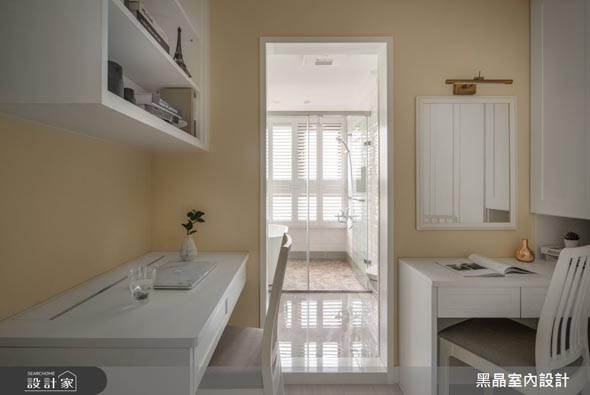 雖然獨立書房並不是每間住宅的必備格局,但簡單安排書桌還是蠻實用的,尤其如果夫妻倆都有在家上班、閱讀書籍的生活需求,或是家裡有兩名以上的學齡孩童,雙書桌設計是相當必要的。兩邊的抽屜和收納櫃可以擺放各自的物品,不會干擾對方放置東西的既定模式,而且書桌還能兼具化妝台功能,同時滿足兩人的日常所需,減少彼此的相處摩擦,生活更為舒適。