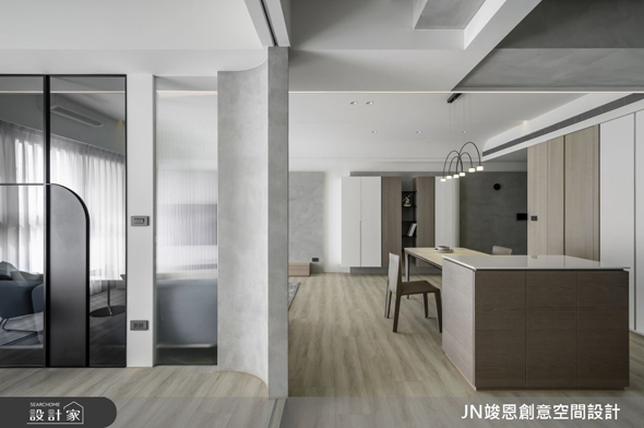 Home Data 設計公司:JN竣恩創意空間設計 設計師:林喬竣 設計風格:現代風 房屋狀況:新成屋 空間坪數:35坪 空間格局:三房 主要建材:乳膠漆、超耐磨木地板、鐵件、烤漆、鋼刷木皮