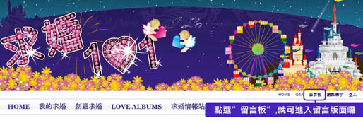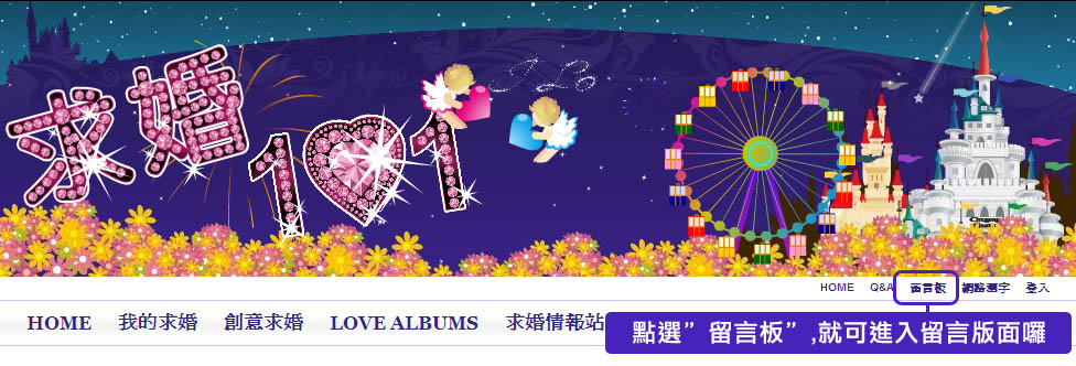 首頁FLASH下的右上方,有”留言板”的選項,點進去後就可以寫下你想傳達的心意囉!